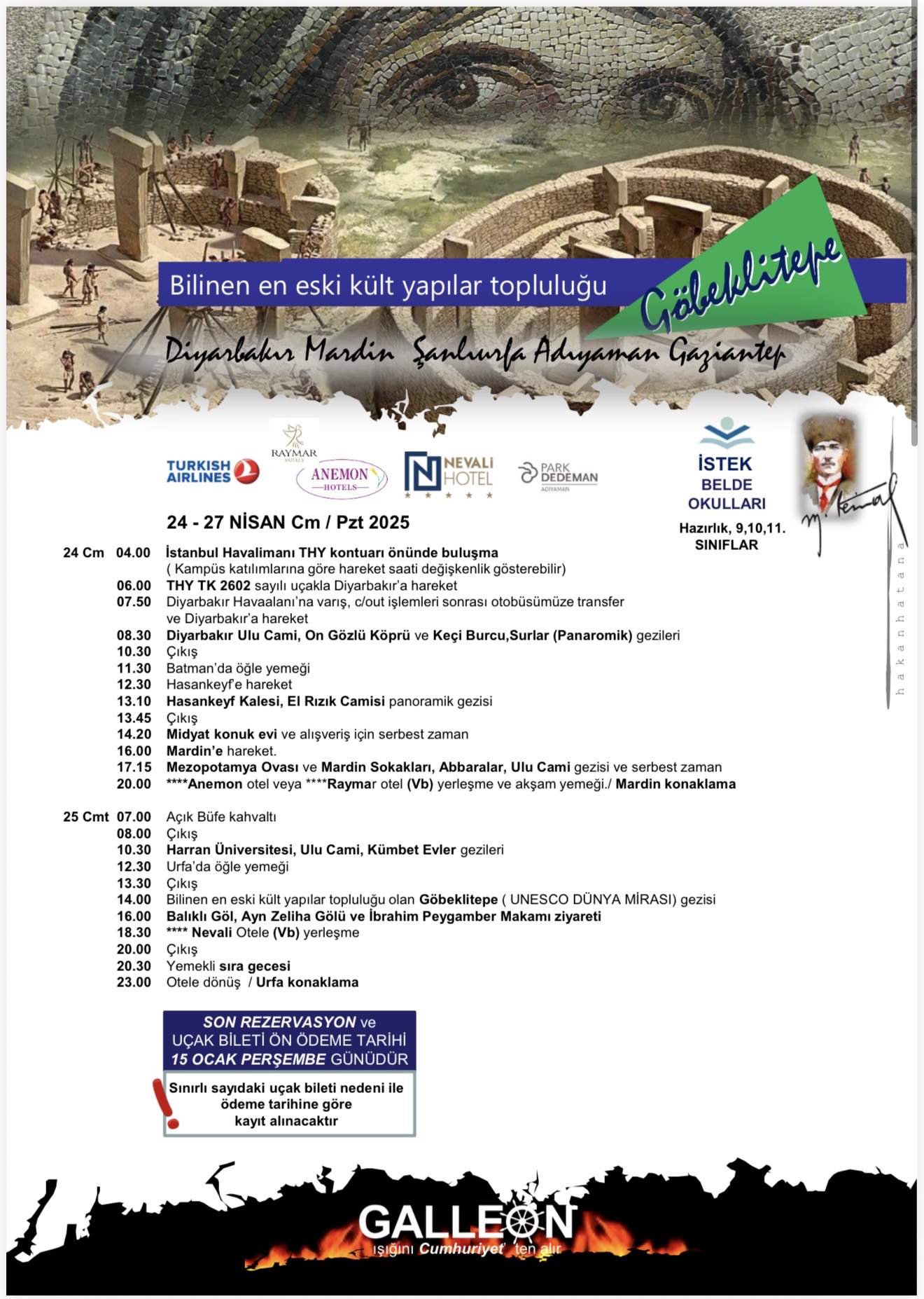İSTEK BELDE OKULLARI 24-27 NİSAN HAZIRLIK,9,10,11. SINIFLAR GÜNEYDOĞU ANADOLU GEZİSİ